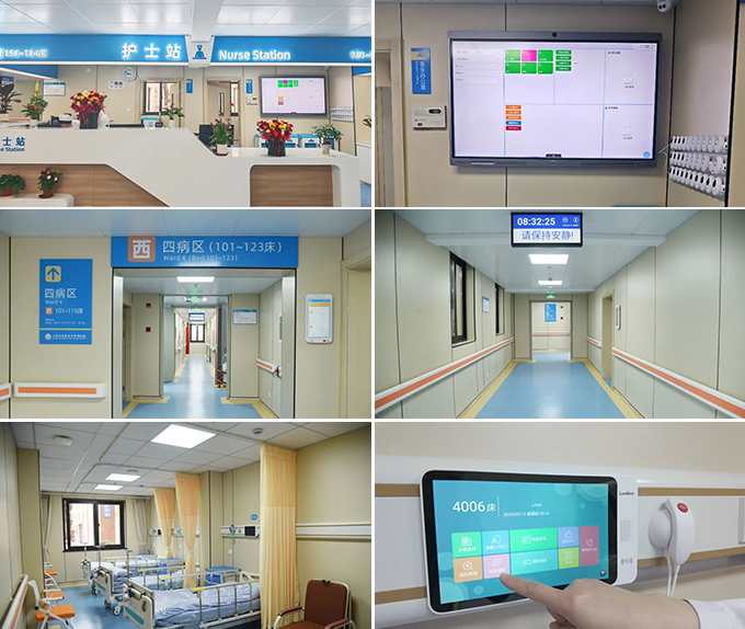 在上海市东海老年护理医院,以搭建开放式软件平台为基础,以具有信息交互显示的护士站智慧大屏为应用核心,并借助网络化带来的开放性、扩展性以及可管理性,拓展:床旁护理、床旁支付、体征监测、定位监护、输液动态监测设备等各类软硬件应用,实现病区各类系统软硬件的集中接入、体征数据的集中采集,打造护士站、走廊、病房的全病区信息交互显示与功能应用,提供多种医护患交互渠道,为患者提供更智能、更高效、更便捷、更安全、更富有人性化的个体化诊疗,切实增强患者就医获得感、幸福感。