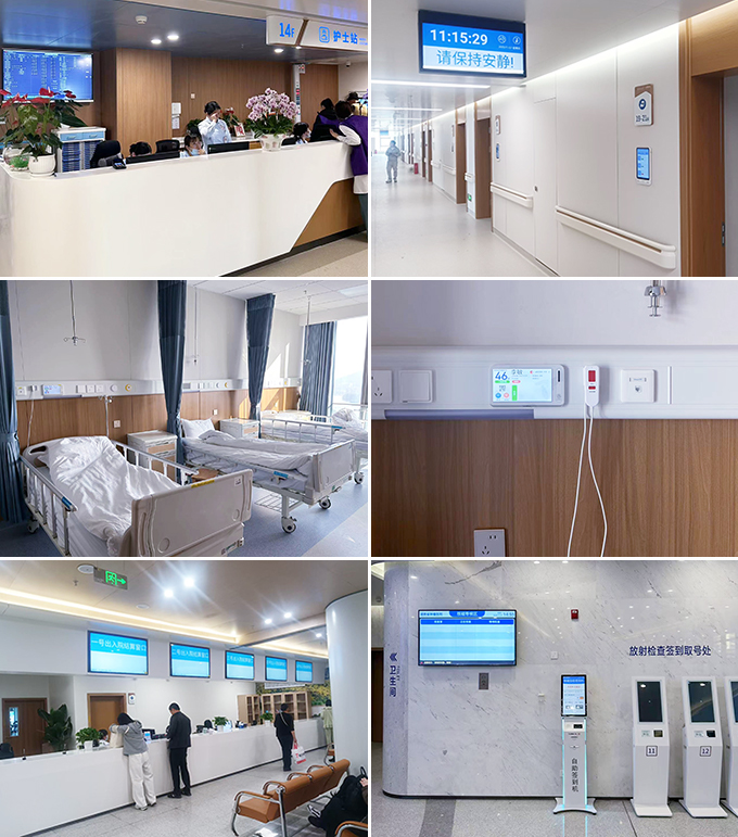 在湖南省肿瘤医院,以搭建开放式软件平台为基础,以信息交互显示为应用核心,建设涵盖“智慧病房”、“智慧门诊”两大运营板块。项目应用包括:床旁护理、床旁支付、排队叫号、信息发布等各类软硬件应用,通过软硬一体的多维交互智能设备,打造医院全区信息交互显示与功能应用,达到构建智能高效的医护患综合管理,更好地保障医疗安全,更好地以患者为中心,并提供有品质的医疗服务及舒适就医环境。