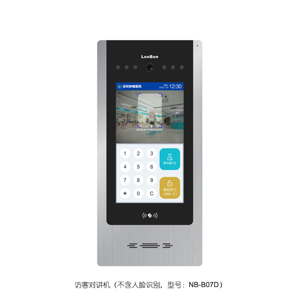 • 采用触摸显示屏,铝合金外壳,含摄像头,支持1080P高清视频,嵌入式安装在病区门口。