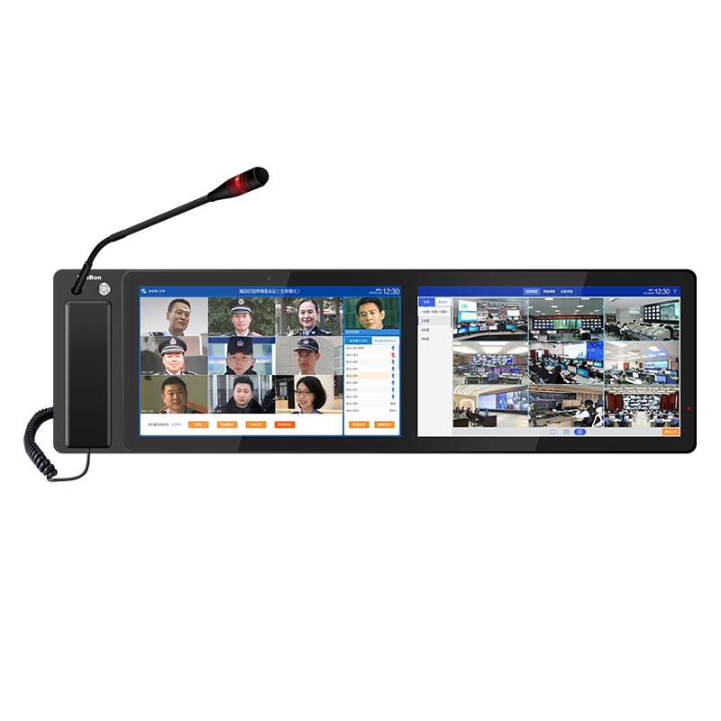 • 硬质铝合金外壳,CNC加工,双屏一体化设计;15.6英寸触摸显示屏,1080P高清视频,桌面式安装。