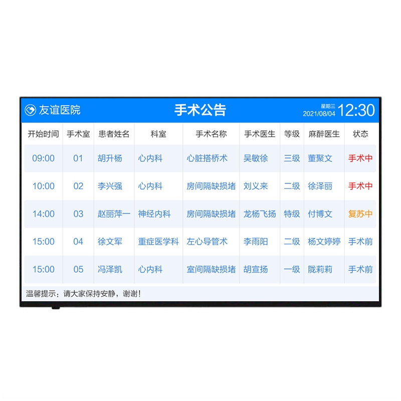 1. 手术公告显示屏