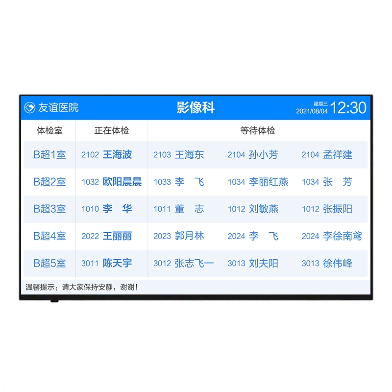 体检排队叫号模块 — 等候区叫号显示屏 —