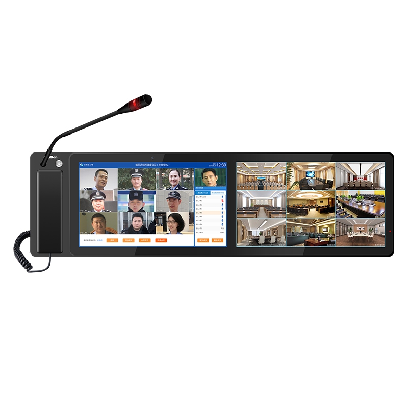 • 硬质铝合金外壳,CNC加工,双屏一体化设计;15.6英寸触摸显示屏,1080P高清视频,桌面式安装。