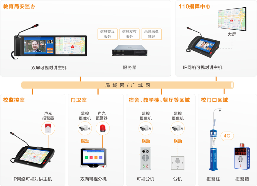 注册即送28元体验金学校一键报警可视对讲系统基于IP网络架构(可跨网段跨路由),以高清音视频编解码技术为核心,构建了一套功能完善、扩展性强、实时性高的联网式音视频实时交互平台,实现教育局、110指挥中心对辖区内校园突发事件的应急响应与远程指挥。
