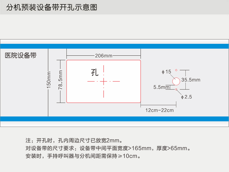 安装时,手持呼叫器与分机间距需保持≥12cm。