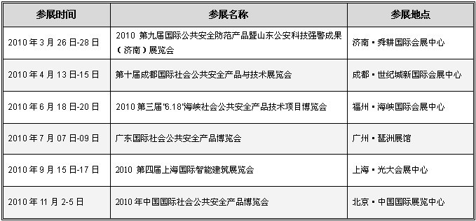 新闻中心 2010年广东国际社会公共安全产品博览会将于2010年7月7日-9日在广东省广州市举办,届时我公司参加,欢迎新老顾客莅临、参观指导。